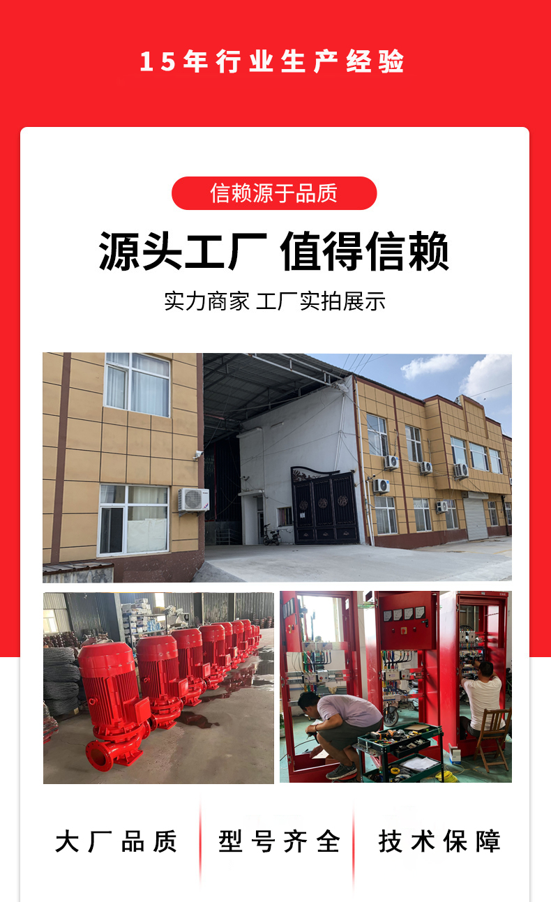 4.驅動與控制系統:電機作為驅動源,為消防長軸泵提供強大動力。在一些對安全性要求極高的場所,如石化企業、油庫等,會配備防爆電機,防止因電氣故障引發火災或爆炸。控制系統則如同設備的 “大腦”,集成了先進的傳感器和智能控制算法,能夠實時監測泵的運行參數,如流量、壓力、轉速等,并根據實際需求自動調整,確保泵始終處于最佳工作狀態。