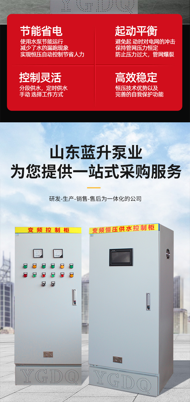 供水設備變頻控制柜作為現代供水技術的重要創新成果,以其先進的工作原理、卓越的功能優勢和廣泛的應用場景,正深刻改變著我們的供水方式,為實現高效、節能、智能的供水目標提供了有力支撐。隨著科技的不斷進步和人們對生活品質要求的日益提高,變頻控制柜必將在未來供水領域發揮更為重要的作用,為我們創造更加美好的生活和生產環境。