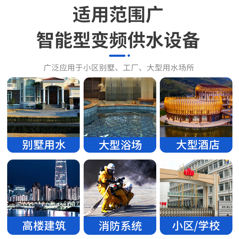 擴展性強:恒壓變頻供水設備可以根據實際需求進行擴展和升級。當供水系統的水量需求增加時,可以增加水泵數量或者更換更大容量的水泵,以適應不同的供水需求。