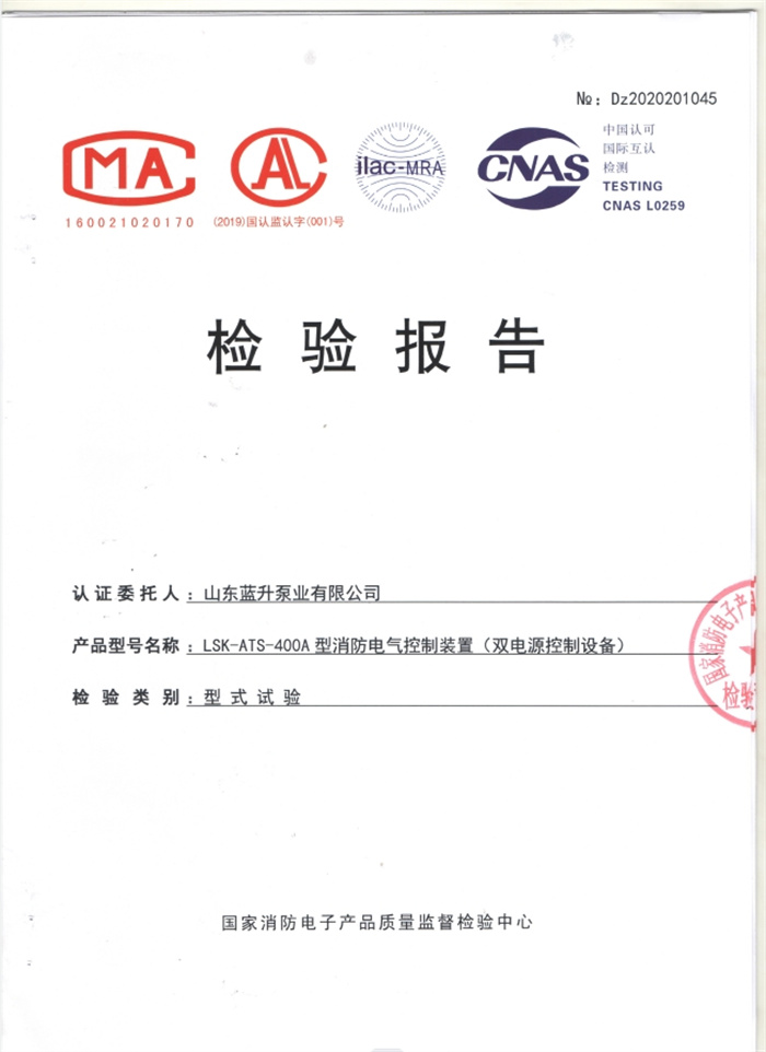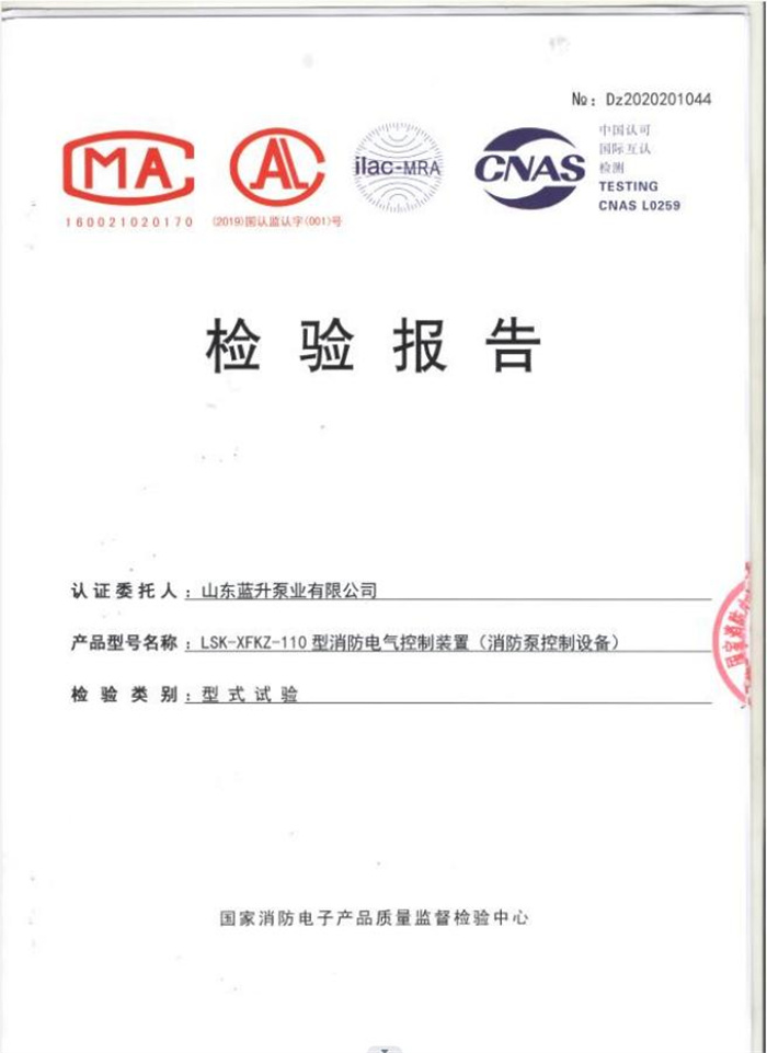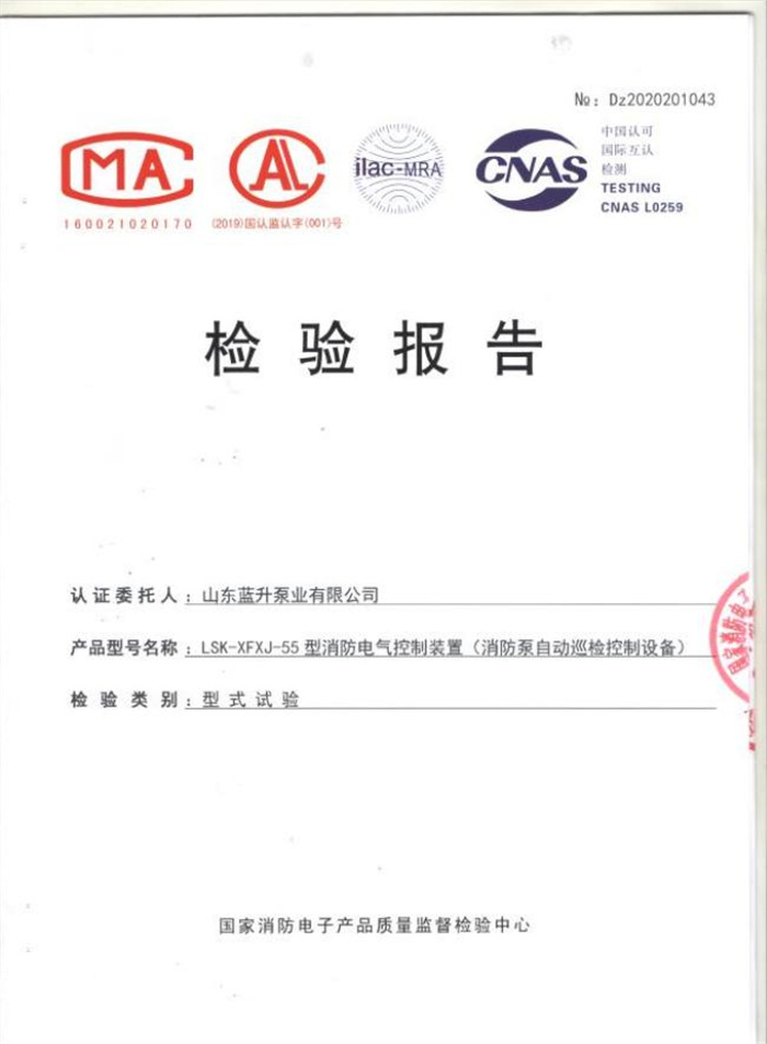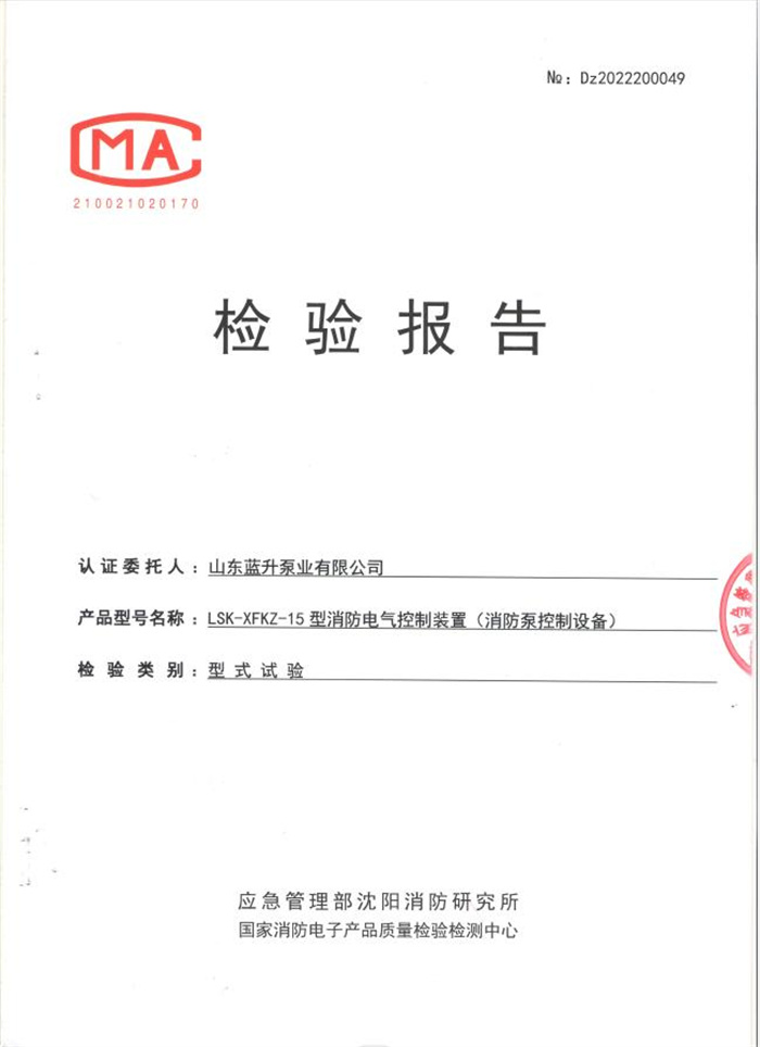 藍升離心泵檢驗報告