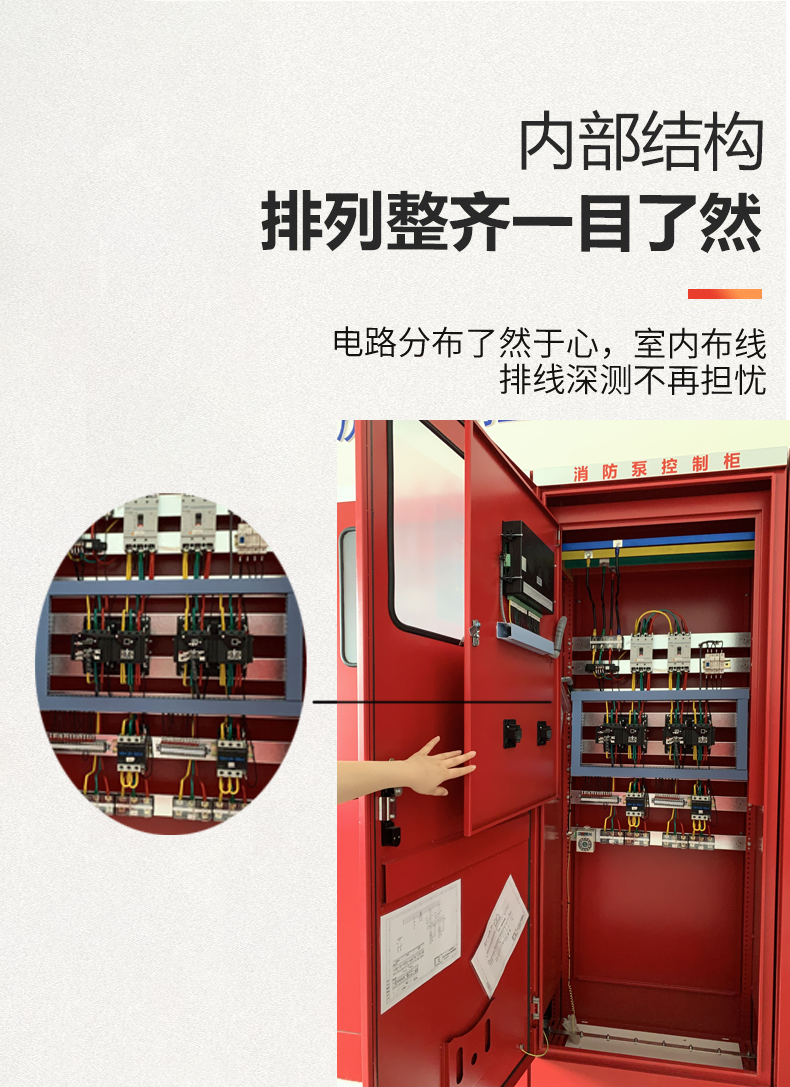 消防泵控制設備需具有自動、手動和遠距離啟泵三種啟泵方式,遠距離啟泵包括消防控制中心啟泵以及消火箱按鈕啟泵。消防給水系統設置備用消防水泵,控制柜應具有主用泵故障時,備用泵自動投入功能。消防泵控制柜手動、自動控制方式,手動時由面板操作按鈕控制水泵啟停。
